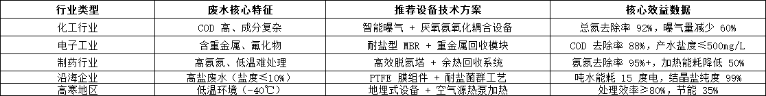 三、場(chǎng)景適配:分行業(yè)廢水處理設(shè)備選型指南